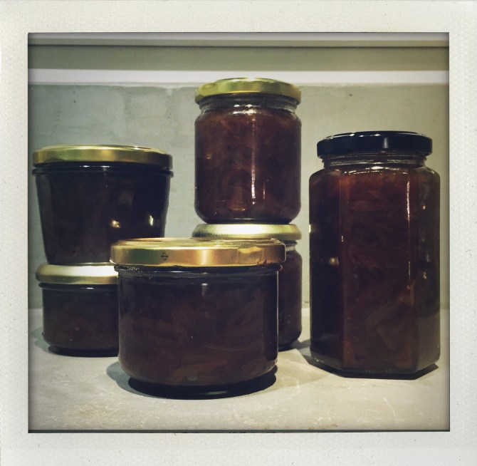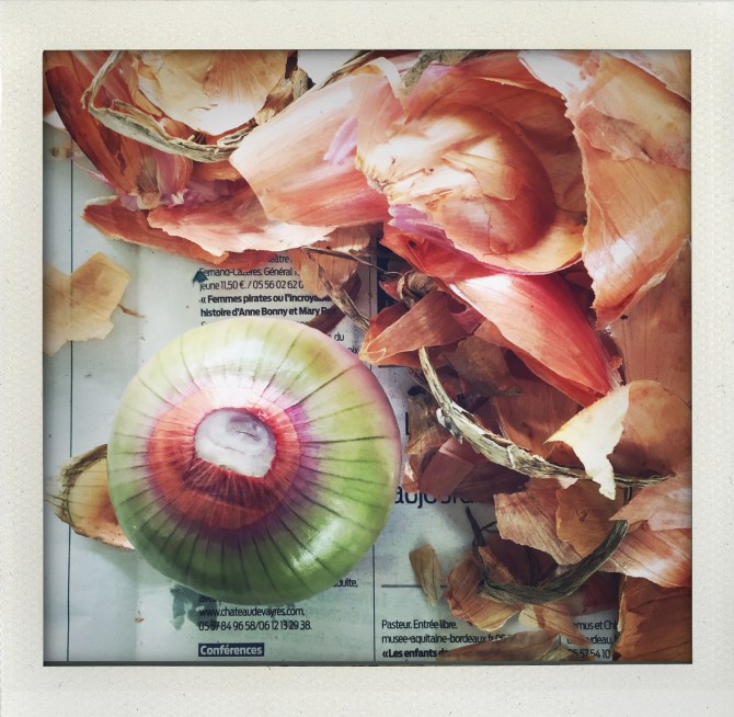 Aujourd’hui, ce sont des oignons de Roscoff qui m’ont fait un clin d’oeil. Deux kilos ont sauté dans le panier. Qu’est-ce que je vais faire de vous les gars ? Des bocaux à échanger avec les amis (avis), aux côtés des coulis de tomate, axoa, cornichons, confitures…