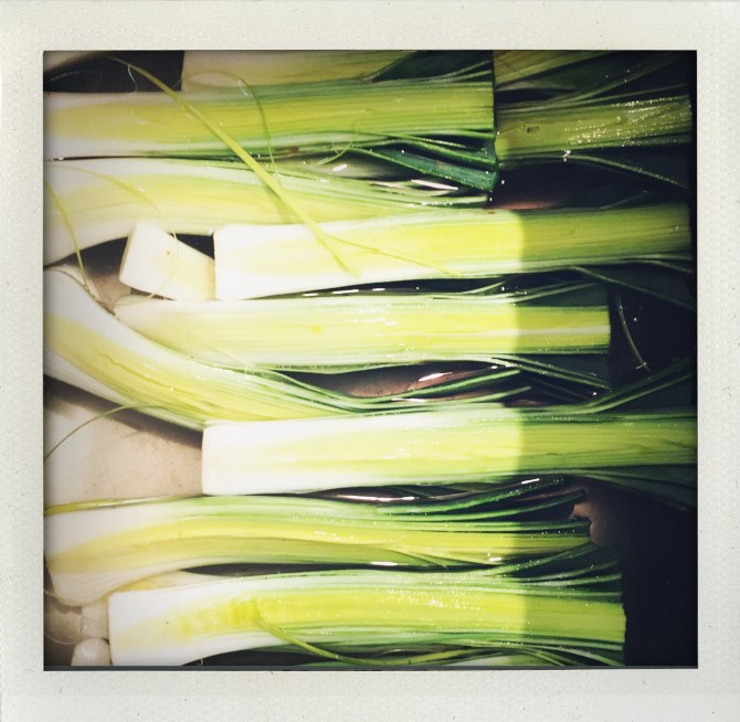 des poireaux,