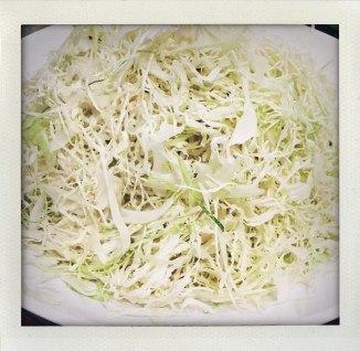 Emincer le chou, le plus finement possible, avec une mandoline c’est idéal.